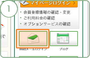 ぷららマイページの右側に表示されているメール通数、および迷惑メール通数をクリックすると、「ぷららWebメール」にログインします。